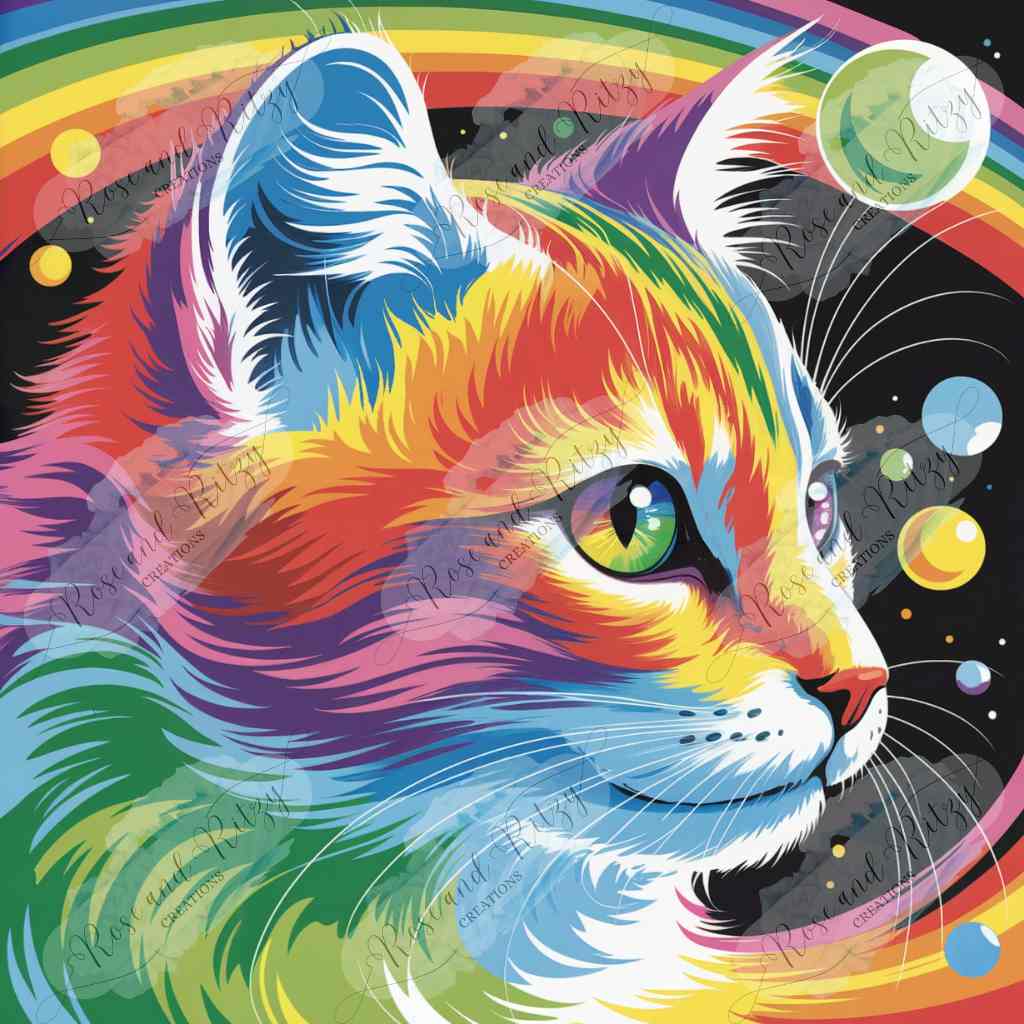 A vibrant, cosmic celebration of personality, this piece transforms a simple feline profile into a burst of rainbow energy. The bold hues, the luminous eye, and the star‑dusted backdrop create a sense of motion and magic—like a guardian of color drifting through its own little universe. As a diamond painting, it becomes a joyful, high‑impact project, each sparkling drill adding to a story of curiosity, pride, and unapologetic brightness. It’s perfect for anyone who loves expressive animals, vivid palettes, and artwork that instantly lifts the mood.