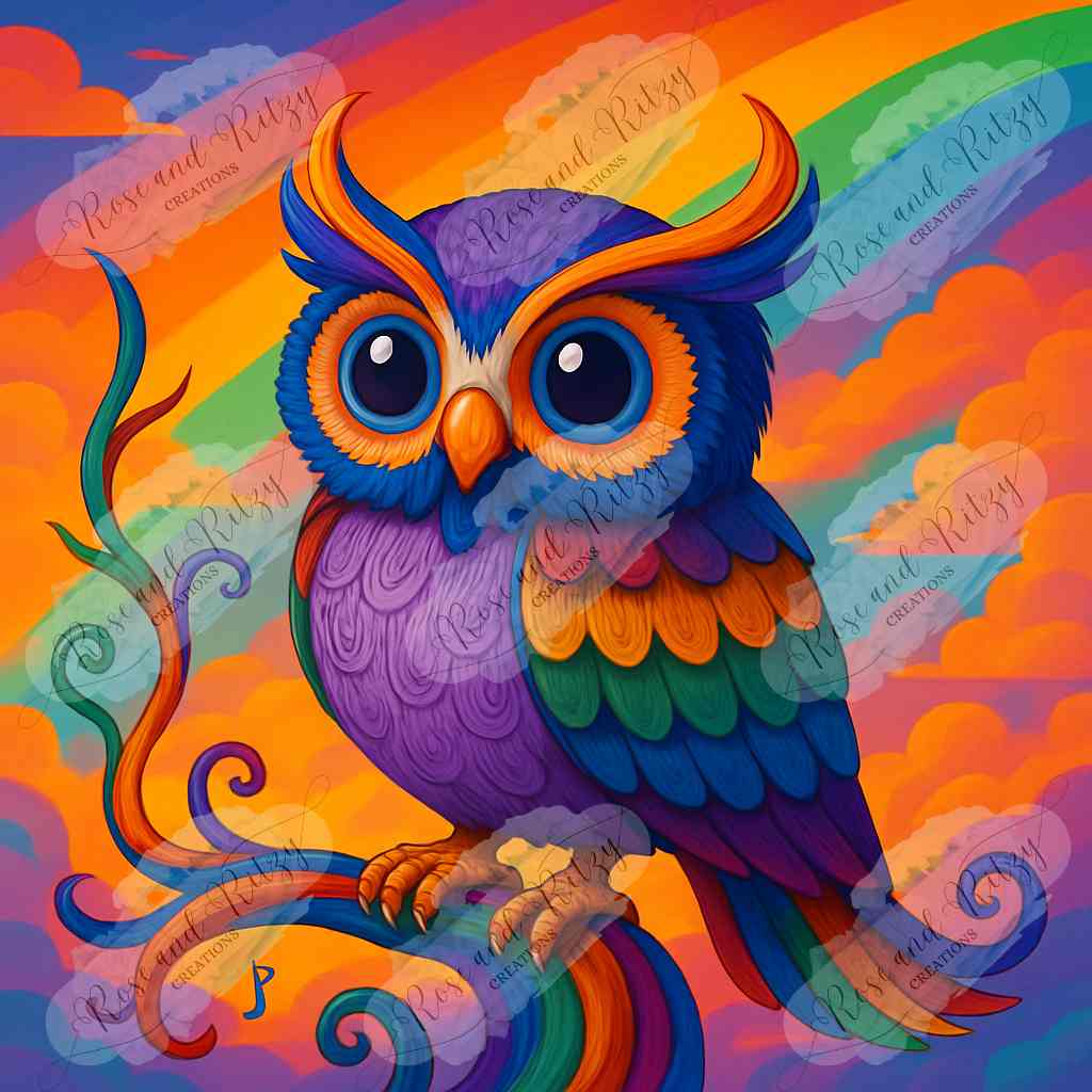 A bright, whimsical burst of color and personality, this piece turns an already enchanting creature into a full celebration of joy and Pride. The expressive eyes, the swirling feathers, and the rainbow‑washed sky create a sense of wonder—like a guardian of color perched between daydream and magic. As a diamond painting, it becomes a lively, uplifting project, each sparkling drill adding to a story of wisdom, playfulness, and the courage to stand out boldly. It’s perfect for anyone who loves fantasy creatures, vivid palettes, and art that radiates pure delight.
