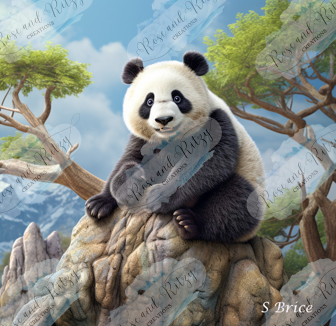 Experience the beauty of nature with Su Lin by Sarah Brice. This stunning piece features a panda bear in a serene mountain setting, perfect for any personal art collection.