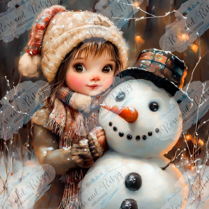 Winter Friends Forever by Stacy Deal is a heartwarming painting capturing the bond between a girl and her snowman in a winter wonderland. Perfect for personal art collections.