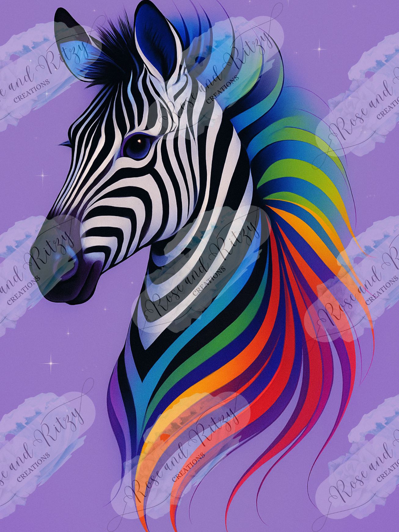 A bold, whimsical twist on a classic creature, this piece turns the zebra’s natural elegance into a celebration of individuality and Pride. The crisp black‑and‑white stripes paired with that radiant rainbow mane create a striking contrast—like someone who carries their true colors with quiet confidence. As a diamond painting, it becomes a joyful, eye‑catching project, each sparkling drill adding to a story of uniqueness, courage, and the beauty of standing out in your own way.